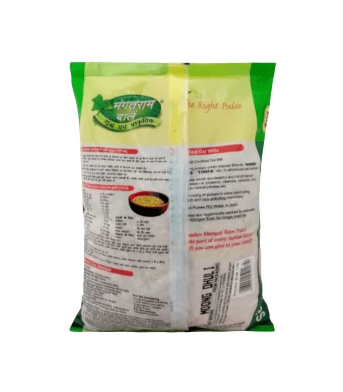Abundant in proteins, Mangat Ram Moong Dhuli is extensively utilized for preparing a diverse range of dishes, including Dal Tadka. Beyond its application in main course dishes, sweets, and papad, these lentils also contribute to the creation of nutritious and flavorful evening snacks. Key Features: Hygienically packaged High protein content Naturally flavorful Country of Origin: India Shelf Life: 180 days