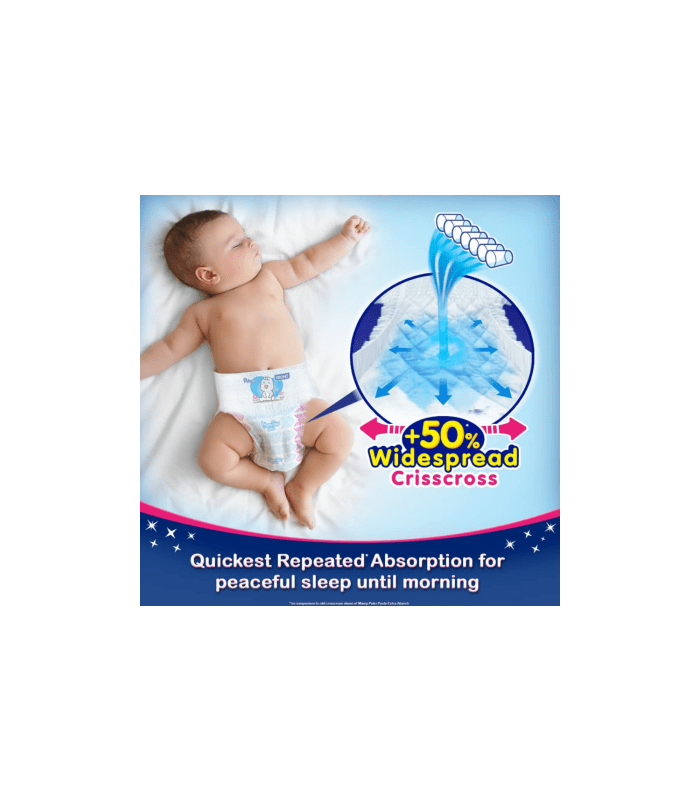 MamyPoko Standard Pants are crafted to provide reliable comfort and protection for your baby. They include an extra-wide crisscross sheet that efficiently absorbs urine, preventing leaks without added bulk. Offering up to 12 hours of protection, these pants help prevent thigh gaps and redness. Their pant-style design makes them easy to wear and remove, simplifying diaper changes.