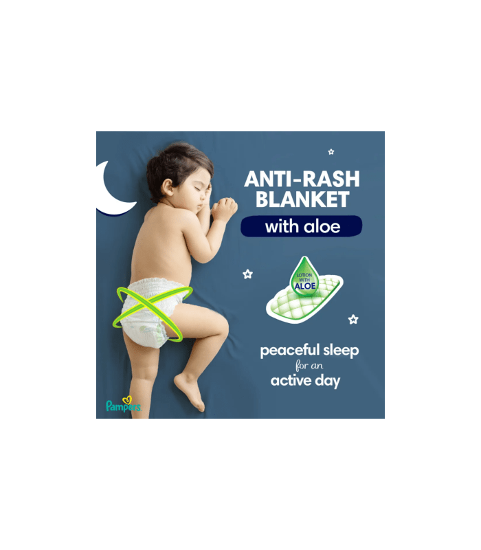 Pampers All-round Protection Pants are designed for optimal comfort and dryness, ensuring your baby stays protected and comfortable all night long.