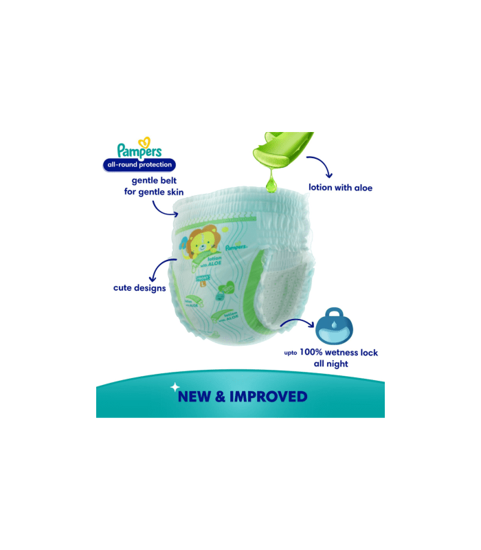 Introducing the new and improved Pampers All-round Protection Pants, designed to offer complete protection for your baby. As the world's leading diaper brand, Pampers delivers top-quality care.