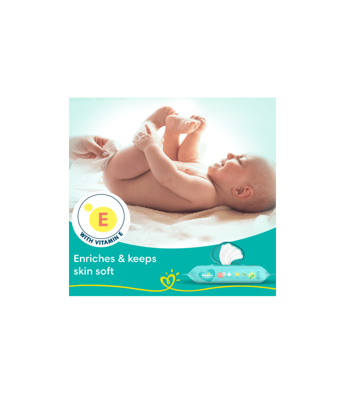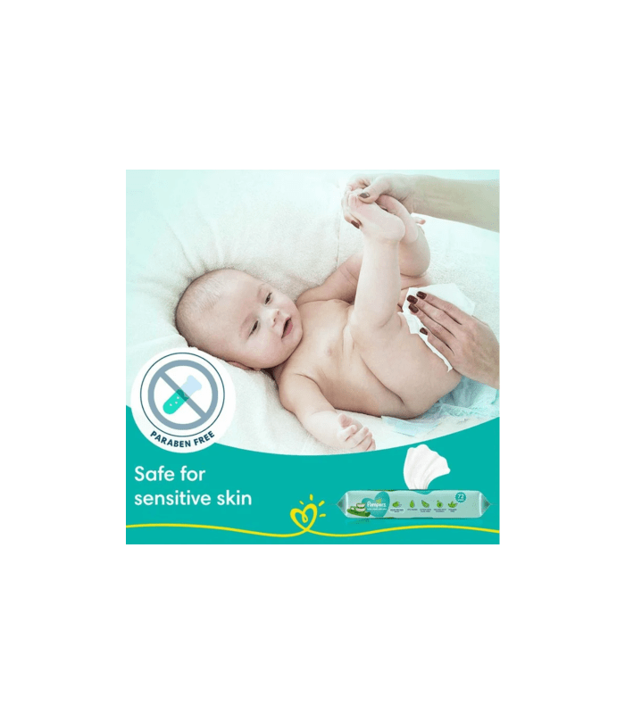 Every little miracle deserves gentle protection, and Pampers has long been trusted by mothers and doctors for their reliable care. Pampers Baby Wipes with Aloe are enriched with the soothing properties of Aloe vera to help prevent skin rashes and redness. Made with 97% pure water, these wipes offer gentle cleaning similar to cotton and water. Free from parabens and infused with Vitamin E, Pampers wipes help maintain the natural pH balance of your baby’s skin, keeping it healthy and nourished. They are thick, soft, and durable, providing thorough yet gentle cleaning. Additionally, the wipes have a mild, refreshing fragrance that both you and your baby will enjoy. Each pack includes 72 wipes with a convenient lid.