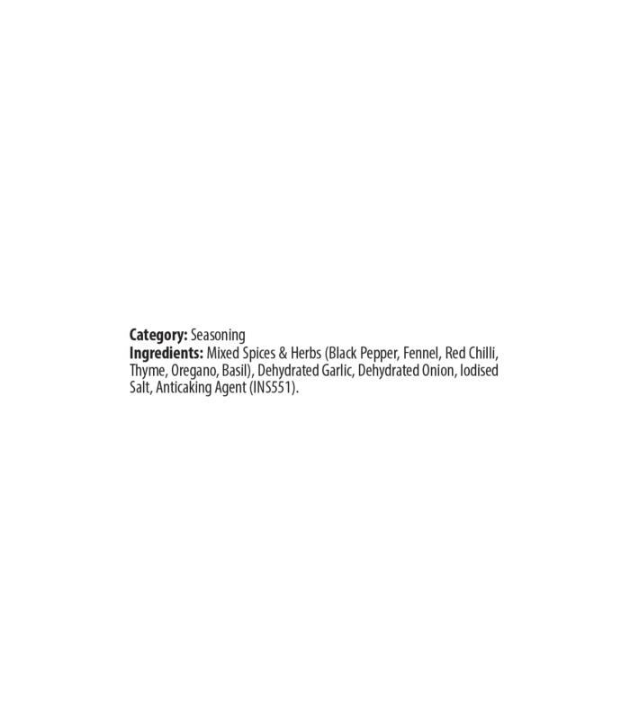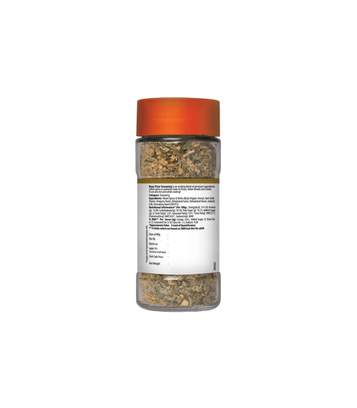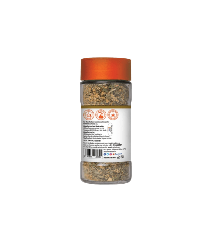 Keya Pizza Seasoning comprises meticulously crafted and processed ingredients, imparting a savory taste and refreshing mint-like flavor that enhances the texture of any pizza. Its versatility extends beyond pizzas, as it can also elevate the flavors of dishes such as pasta, garlic bread, and salads.