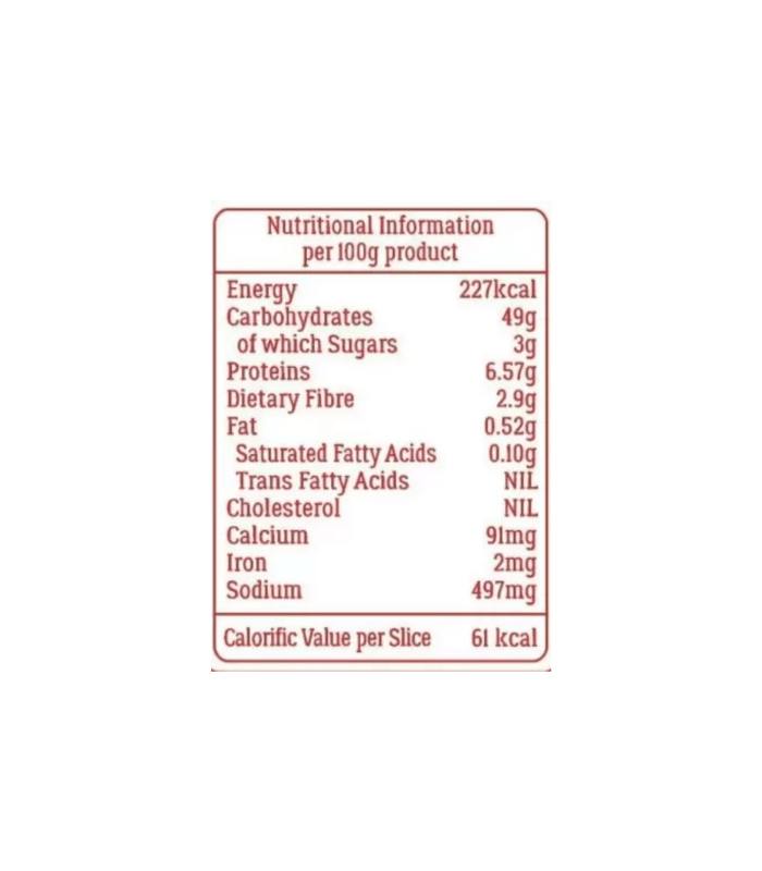 Refined Wheat Flour (Maida), Sugar, Wheat Protein (Gluten), Yeast, Salt, Refined Soyabean Oil, Refined Palm olein Oil, Soya Flour, Class II Preservative, Permitted Emulsifier, Acidity Regulator and Antioxidant.