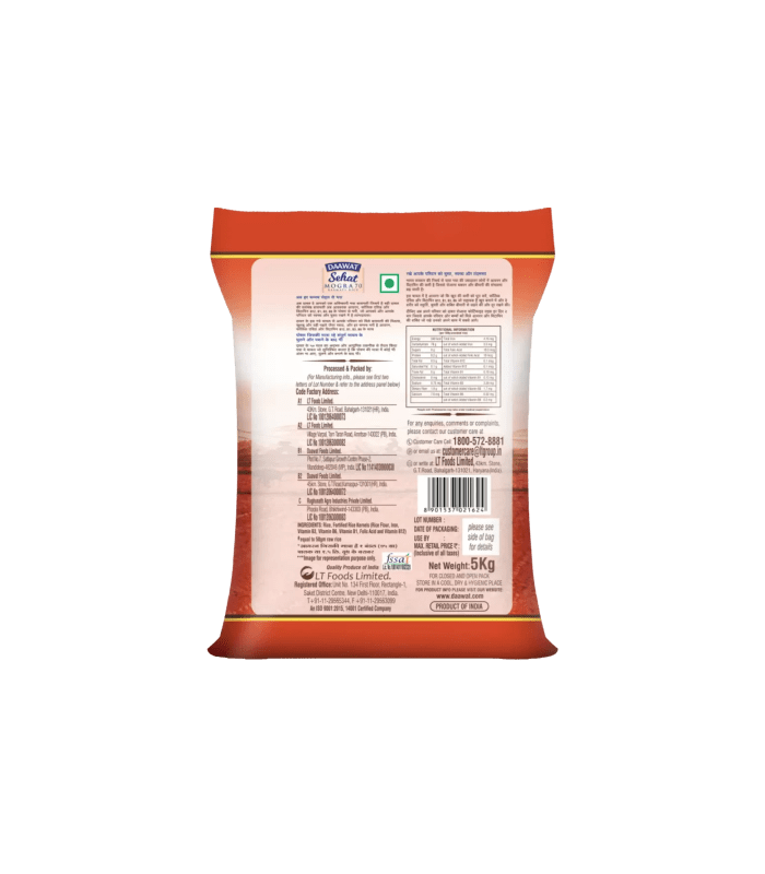 Daawat Sehat Mogra Basmati Rice is celebrated for its exceptional quality and delightful taste. Harvested from the fertile fields of India, it features elongated grains with a subtle fragrance that elevates every dish it is paired with. Committed to promoting health and well-being, Daawat guarantees that each grain is rich in essential nutrients, providing a wholesome option for conscious consumers looking for both flavor and nourishment in their meals.