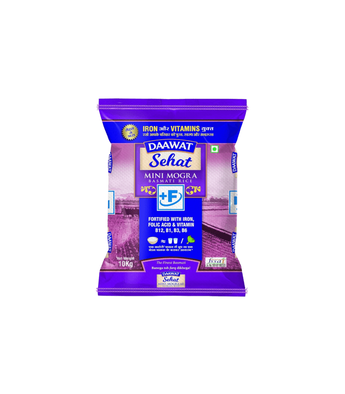 Daawat Sehat Mini Mogra Basmati Rice offers a delightful taste and captivating aroma, derived from carefully selected short-length grains. Harvested and processed from premium-quality paddy, it undergoes hygienic packaging to preserve its freshness. Rich in essential nutrients like magnesium, iron, folate, and B-vitamins, this rice variety promotes good health. Ideal for preparing a variety of dishes including pulao, biryani, kheer, and fried rice, it cooks up with a fluffy, soft texture that doesn't stick together