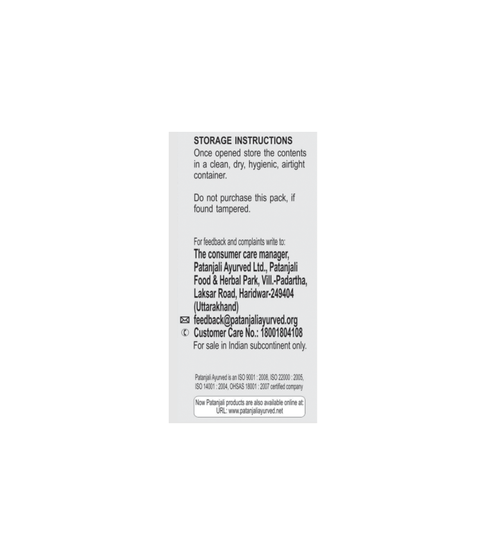 Country Of Origin: India Shelf Life: 12 months Manufacturer Name: PATANJALI AYURVED LIMITED Manufacturer Address: